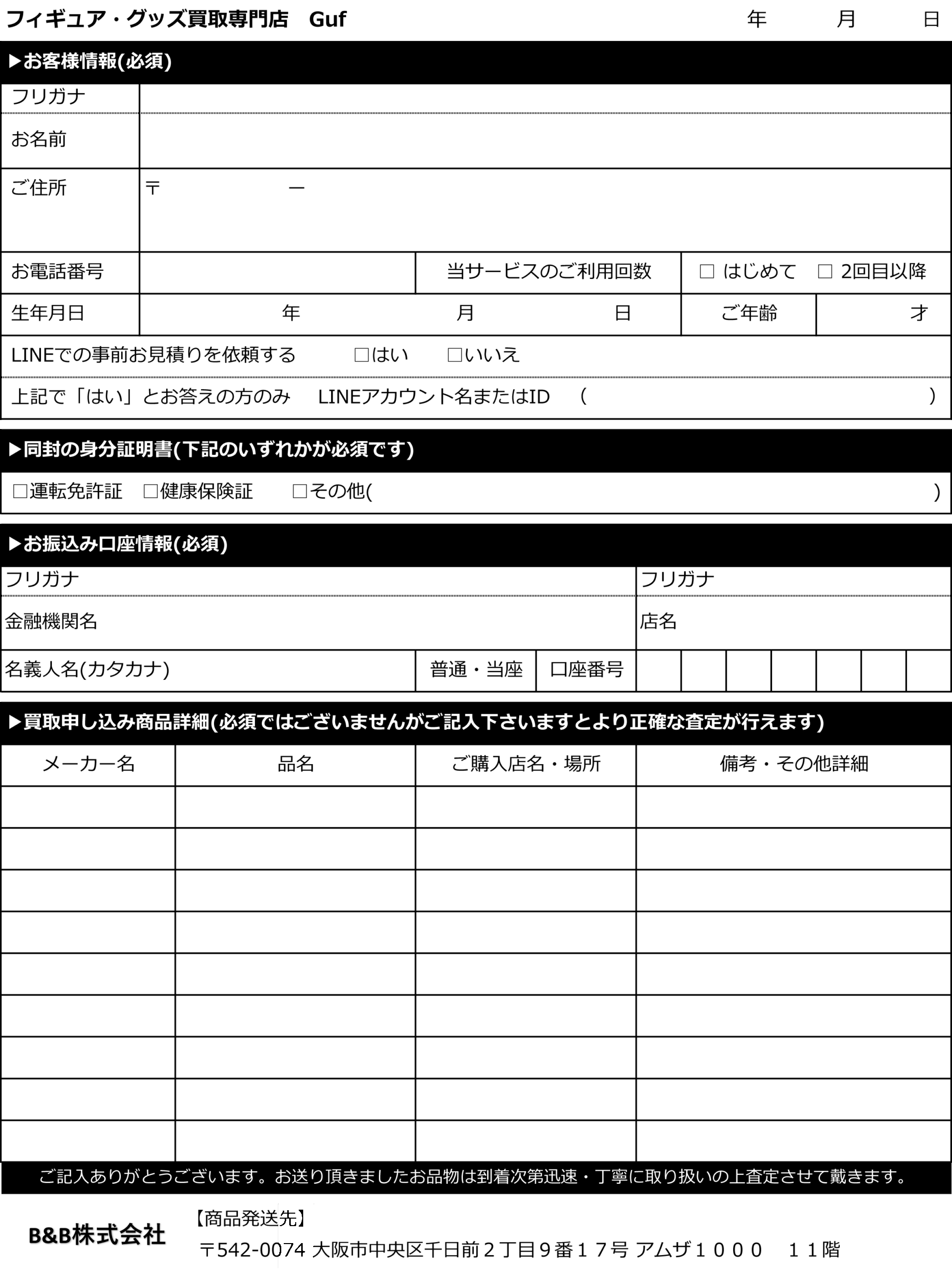 ・買取金額のお支払いは銀行振り込みのみとさせていただいております。